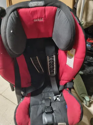 Silla de coche para niños de la marca Axkid, en color rojo y negro. Cuenta con un diseño ergonómico y acolchado para mayor comodidad. - Reposacabezas ajustable. - Sistema de arnés de seguridad. - Funda extraíble para lavado.