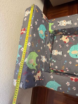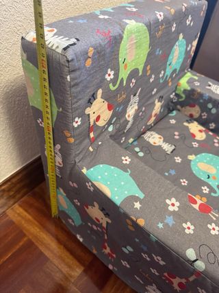 Acogedor sillón infantil con un divertido estampado de animales. - Diseño con elefantes, jirafas y cebras. - Tonos grises y colores vivos. - Tejido suave al tacto. - La funda se puede quitar para lavar