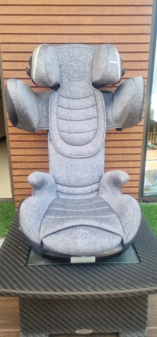 Silla de coche Cybex en color gris jaspeado. - Diseño acolchado para mayor comodidad. - Reposacabezas ajustable. - Funda extraíble y lavable.
