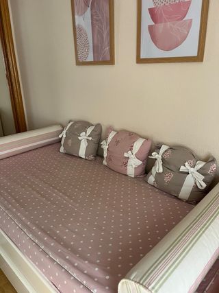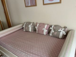 Cama de 90 Incluye colcha, fundas de cojines, dos rulos. Se envían solo los textiles por cuestiones de espacio, la venta en persona incluye los rellenos de rulos y cojines.