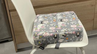 Asientos elevadores (2) para sillas con un divertido estampado de animales polares y pingüinos. - Funda de tejido resistente y lavable. - Correas de sujeción para la silla.