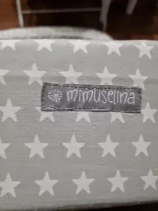 Cojín de lactancia gemelar con un diseño de estrellas grises sobre fondo claro. Es cómodo y práctico para alimentar a dos bebés a la vez. - Funda con estampado de estrellas. - Forma ergonómica para el soporte. Marca mimuselina