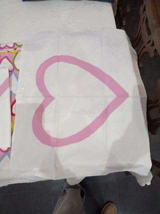 Funda nórdica con fundas de almohada alargada y cojín cuadrado. Tengo dos, ambas muy poco usadas. Cada una a 9€, las dos por 16€.