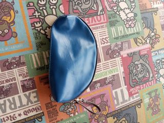 Preciosa funda cosmética azul marino, ideal para guardar tus maquillajes o artículos de tocador. Es pequeña y compacta, perfecta para llevar en el bolso. Tiene un pequeño defecto. - Color azul marino. - Asa de mano. - Cierre de cremallera.
