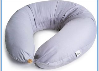 Cojín de lactancia en color gris, ideal para mayor comodidad durante la alimentación. - Funda de algodón suave. - Diseño ergonómico en forma de U - Desenfundable y lavable