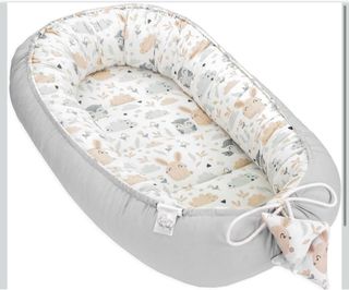 Acogedor nido para recién nacidos, ideal para crear un espacio seguro y cómodo. - Diseño con estampado de búhos - Funda exterior gris (reversible). - Cierre con cordón. - Lavable.