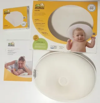 Cojín Mimos para prevenir y tratar la plagiocefalia, talla S con una funda. Diseñado para el confort del bebé. - Material transpirable. - Forma ergonómica. - Funda lavable.