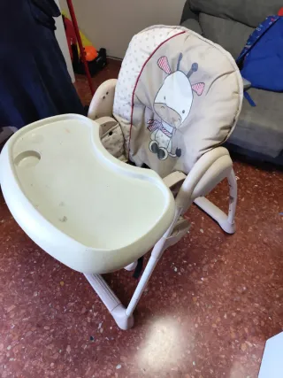 Trona de bebé con un divertido diseño de jirafa en la funda. Perfecta para las comidas de los más pequeños. - Funda acolchada con estampado de lunares y jirafa. - Bandeja extraíble. - Estructura resistente y estable.