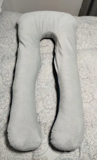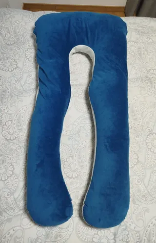 Cojín de apoyo en forma de U, ideal para el embarazo. Su diseño ergonómico proporciona comodidad. - Color azul. - Funda suave al tacto.