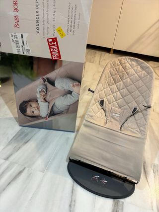 Hamaca Babybjorn en color beige, con funda de transporte incluida. Perfecta para el descanso del bebé. - Diseño acolchado con rombos. - Soporte para el arnés. Viene con funda original de transporte, súper cómoda para llevarla de un sitio a otros. está como nueva