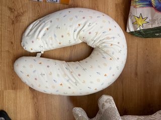 Cojín de lactancia en buen estado, con un bonito estampado de nubes, estrellas y arcoíris. También tiene una funda con arnés para convertirlo en hamaquita. Marca jane - Diseño infantil y alegre. - Tejido suave y cómodo.