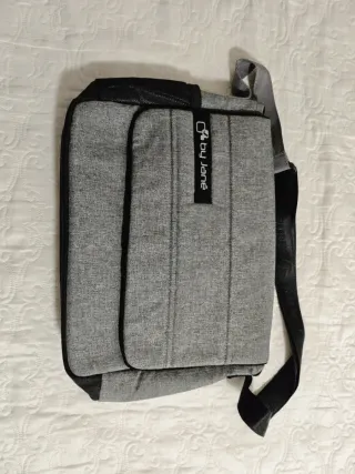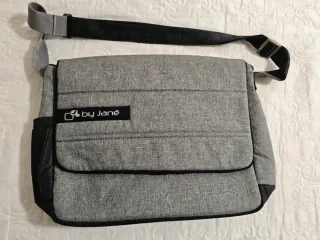 Bolso de la marca Jane en color gris. Práctico y con un diseño moderno. Puede servir como funda de ordenador portátil o cualquier otro uso... No sé a usado prácticamente... - Compartimento principal con cierre. - Bolsillo lateral de malla. - Correa ajustable para colgar al hombro.