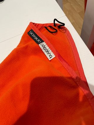 Funda silla y capota de forro polar naranja para bugaboo camaleon. La funda de la silla está perfecta. La capota no es extensible y está un poco descolorida en la zona de la varilla. El material y los enganches están todos bien, no tiene rotos