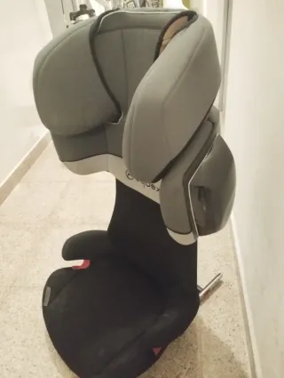 Silla de seguridad para coche de la marca Cybex. Diseñada para ofrecer comodidad y protección. - Color gris y negro. - Reposacabezas ajustable. - Funda extraíble y lavable.
