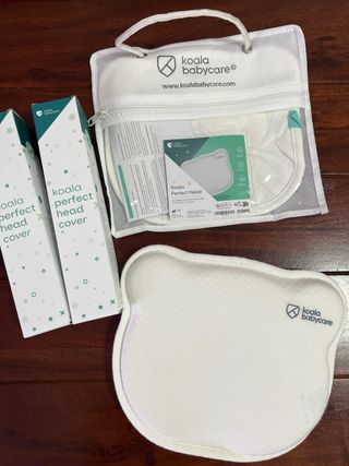 Cojín de la marca Koala BabyCare diseñado para la cabeza del bebé. Incluye Tres fundas. - Cojín ergonómico. - Tres fundas de tela. - Diseño con forma de oso.