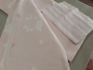 Conjunto de sábanas para cuna, confeccionadas en algodón 100%. - Tejido suave y transpirable. - Diseño infantil con motivos de animales.
