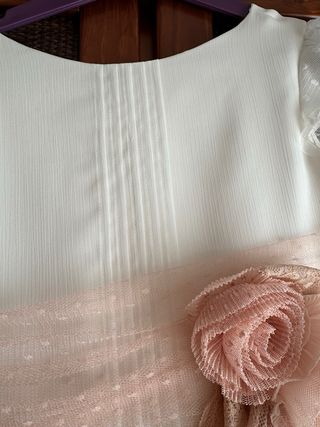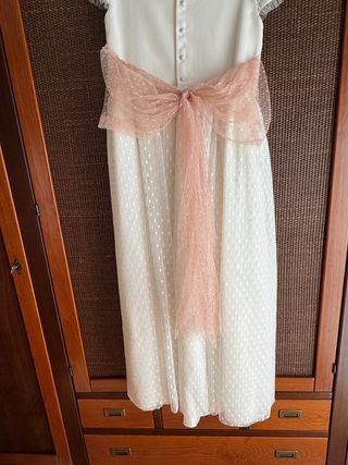 vestido de comunion de niña, tejido en plumetti con fajin rosa, cancan de encaje y funda portatrajes.talla 12 años , no esta metido ni modificado. NUEVO IMPECABLE