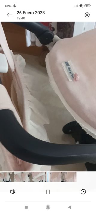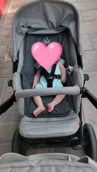 Silla de paseo Jané Muum en color gris. - Chasis ligero y compacto. - Capazo y silla de paseo. - Asiento reversible. - Capota extensible. - Es gris, con la funda de la silla reversible en gris más oscuro. - Aparte, compré una capota rosa oficial Jané con la funda de la silla, reversible en rosa o gris con los bordes rosas. - Lleva también una funda de verano rosa claro con el bolso a juego.