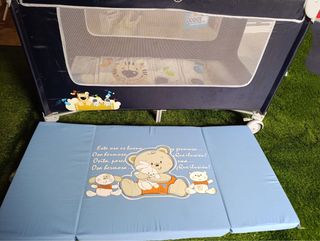 Parque cuna marca MS , incluye colchon y funda para transportar el parque, pequeña grieta de dos cm en lateral ( se puede coser y no se nota)