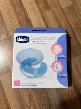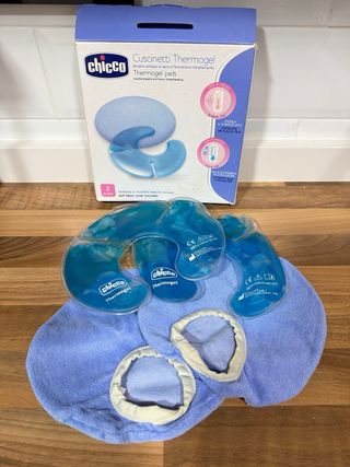 Almohadillas de termogel de Chicco para aliviar el pecho y favorecer la lactancia. Incluyen funda de tejido suave. - Uso en caliente o frío. - Estimulan el flujo de leche (uso en caliente). - Alivio inmediato del dolor (uso en frío). - Incluye 2 almohadillas y 2 fundas. Sin usar. Compradas por 19,95€.