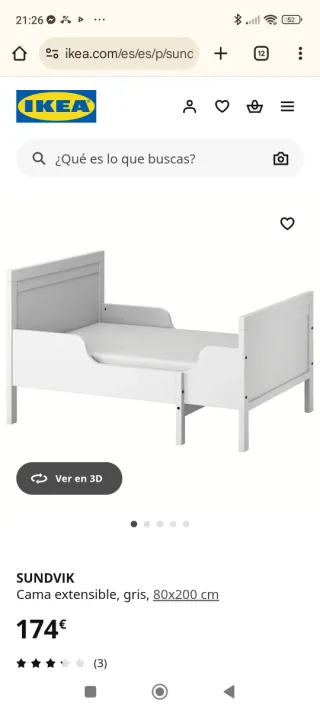 Colchón de espuma NATTSMYG de IKEA, ideal para camas extensibles. - Medidas: 80x200 cm. - Funda extraíble. - Marca: IKEA. - En stock.