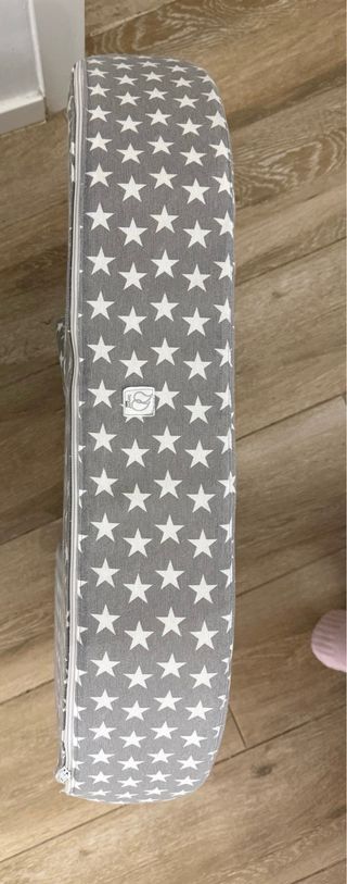 Cojín de lactancia de la marca sonora baby con un divertido estampado de estrellas grises sobre fondo blanco. Es suave y cómodo. - Funda con estampado de estrellas desenfundable y lavable en lavdora. - Cierre de cremallera. - Almohada de lactancia gemelar fabricada con espuma interior de calidad.