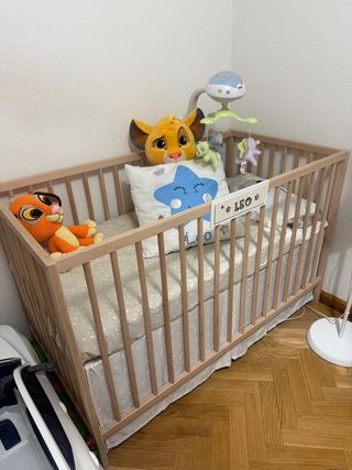 Cuna de madera con colchón