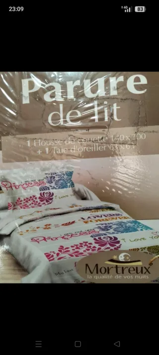 Conjunto de ropa de cama con diseño de princesas. Incluye funda de edredón y funda de almohada. - 1 Funda de edredón: 140x200 cm. - 1 Funda de almohada: 63x63 cm. - Diseño con motivos florales y texto. - Marca: Mortreux.
