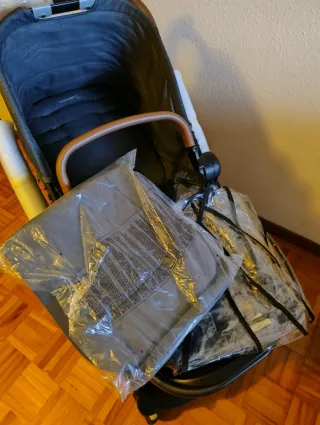 Silla de paseo Bebe Confort Adorra. - Chasis con ruedas, en muy buen estado. - Manillar con empuñaduras de cuero. - Cesta de almacenamiento inferior. - Capazo con colchon incluido parasol y funda de lluvia. - Silla de paseo con muy poco uso, con colchoneta y funda de lluvia. - En muy buen estado. #bebe #sillita #capazo #maxicosi #bebeconfort #adorra
