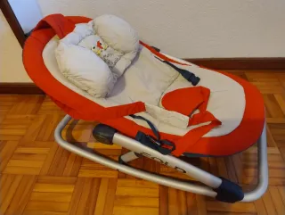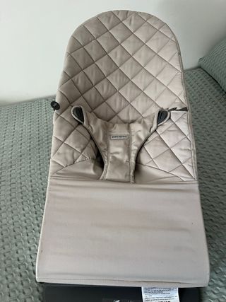 Hamaca para bebés de la marca Babybjörn. Su diseño ergonómico ofrece comodidad y seguridad. - Color beige. - Tejido acolchado. - Sistema de arnés. -En perfecto estado - Se regala funda reversible
