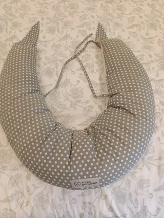 Almohada de lactancia Koala Baby Care con un diseño de lunares grises y blancos. Proporciona soporte y comodidad. - Funda con estampado de lunares. - Forma ergonómica.