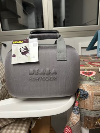 Funda de transporte para Babycook Béaba. - Color gris. - Asa para facilitar el transporte. Está totalmente nueva.