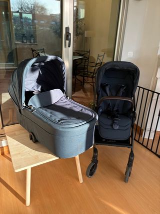 Carrito de bebé Joolz Hub2 en color azul marino. Incluye capazo y silla. - Capazo espacioso y cómodo. - Silla con arnés de seguridad. - Manillar ergonómico. - Ligera y fácil de manejar. - Siempre usado con funda. - 1 año de uso. Se vende por necesidad de sillita gemelar. Se regala plástico de lluvia.