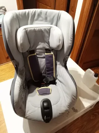 Silla de coche Be Cool modelo 03, apta para los grupos 0 y 1. - Diseño en color gris. - Incluye arnés de seguridad de 5 puntos. - Funda extraíble y lavable. - Tiene los adaptadores de recien nacido como nuevos - Isofix + barra de apoyo al suelo. - Gira 360°, para ir a contramarcha o no y para sacarlo y meterlo con comodidad. -Ningún desperfecto o rotura (solo un poco mas claro por el solo). Para cualquier duda pregunta sin problemas.