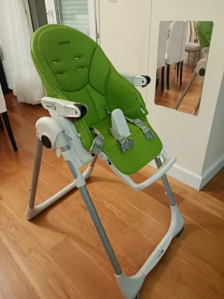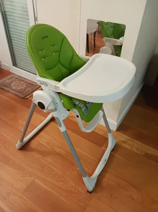 Trona Peg Perego Prima Pappa en color verde. - Asiento acolchado reclinable - Funda verde nueva - Arnés de seguridad de 5 puntos. - Reposapiés ajustable. - PVP 160€ se vende por 40€