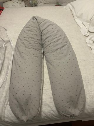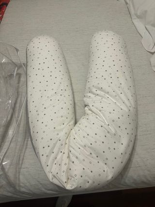 Cojín de lactancia en color gris con un bonito estampado de estrellas. - Funda extraíble y lavable. - Diseño ergonómico para mayor comodidad.