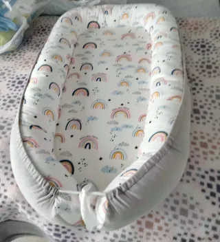Nido para bebé con estampado de arcoíris.