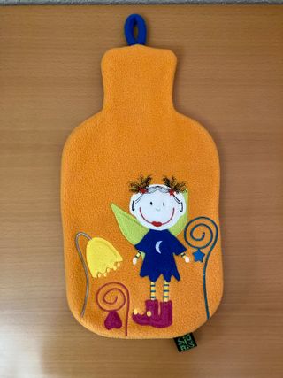 Funda de color naranja con dibujo de hada para bolsa de agua caliente. Solo es la funda, no tiene bolsa de agua caliente. Usada una vez y luego no se ha vuelto a usar porque se rompió la bolsa de agua caliente. Marca: Sigris Disseny. Medidas: 29cm aproximadamente de alto y 20,5cm aproximadamente de ancho. Alguna pregunta, no dudes en contactar. Más artículos relacionados con bebes-niños-niñas y otros artículos variados en mi perfil.