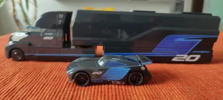 Se vende coche y camión de la colección de la película de "CARS3", de Disney Pixar: Coche "Jackson Storm" y gran camión S20. Modelos hechos en aleación de metal fundido a presión. Escala 1:55. Medidas: Jackson Storm; longitud 8,00 cms y anchura 4,00 cms y camión; 26,00 x 5 cms. Sin ningún rayón, totalmente nuevos. Posibilidad de hacer lotes con otros coches de la colección que vendo. Posibilidad de hacer envíos a través de Wallapop