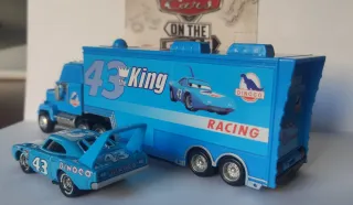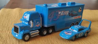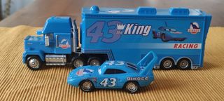 Se vende coche y camión de la colección de la película de "CARS", de Disney Pixar: "Strip WEATHERS 43" y camión Mack "The King Dinoco Hauler". Modelos hechos en aleación de metal fundido a presión. Escala 1:55. Medidas: coche longitud 8,00 cms y anchura 3,50 cms y camión; 22,5 x 5 cms. Sin ningún rayón, totalmente nuevos. Posibilidad de hacer lotes con otros coches de la colección que vendo. Posibilidad de hacer envíos a través de Wallapop