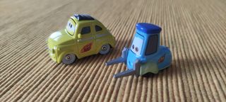 Se venden coches de la película de "CARS", de Disney Pixar: "Guido" y "Luigi". Modelos hechos en aleación de metal fundidos y plástico a presión. Escala 1:55. Medidas: Guido: 4,00 x 1,80 cms., y Luigi : 4,50 x 3,00 cms. Sin ningún rayón, totalmente nuevos. Posibilidad de hacer lotes con otros coches de la colección que vendo. Posibilidad de hacer envíos a través de Wallapop