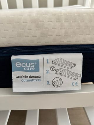 Colchón para cuna de la marca Ecus Care, modelo Care Antiplagiocefalia. Diseñado para el descanso del bebé. Colchón usado en perfectas condiciones. 57x117 cm tejido anti asfixia y homologación europea. Desenfundable para poder usarlo como colchón de viaje. Altura 12 cm - Tejido exterior transpirable. - Núcleo de alta densidad. - Funda extraíble y lavable.