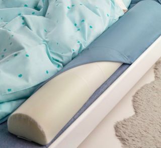 Barandilla de seguridad para cama infantil. Ayuda a prevenir caídas durante la noche. La cama de las imágenes es una cama de 1,10. Se puede quitar la funda mediante cremallera para lavar fácilmente. Se pone debajo de la sábana bajera. - Funda de tela blanca - Relleno de espuma. - tela impermeable