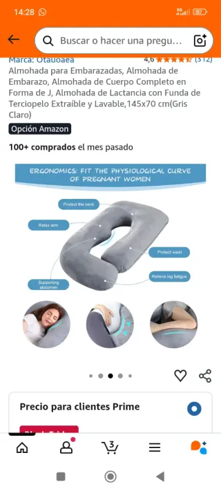 Almohada de cuerpo completo en forma de J, ideal para embarazo y lactancia. Funda de terciopelo extraíble y lavable. - Color: Gris Claro