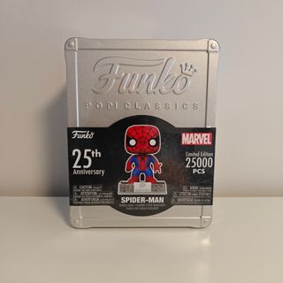 Figura coleccionable de Spider-Man de Funko Pop! Classics, celebrando el 25 aniversario. - Edición limitada a 25,000 piezas. - Diseño inspirado en Year One. - Incluye caja metálica conmemorativa. Estado Nuevo, 10/10 🆕 📦 Envio Rápido,Muy Bien Protegido📦