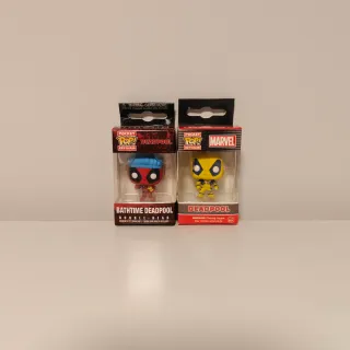 Dos figuras Funko Pop! de Deadpool en formato llavero. - Bathtime Deadpool Bobble Head. - Deadpool Bobble Head con traje amarillo. - Producto oficial de Marvel. - Advertencia: Contiene piezas pequeñas. Precio Pack: 15€ Como Nuevo,nunca abierto 🆕 📦 Envio Rápido,Muy Bien Protegido📦