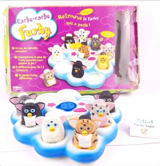 Funciona pero faltan algunos Furbys. La caja está muy dañada. Presenta desgaste, manchas, arañazos... Es la edición francesa.
