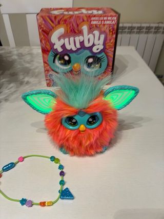 Furby interactivo en buen estado, con un diseño multicolor vibrante. - Peluche suave y esponjoso. - Orejas y ojos característicos de Furby. - Incluye accesorios. - Caja original.