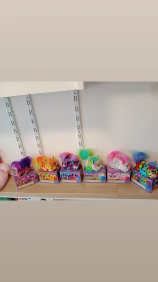 Nuevo sin estrenar. - Pelaje suave en tonos morado y rosa. - Cresta de pelo azul brillante. - Corazón decorativo en la frente. - Ojos grandes y expresivos. - Patas y orejas a juego.