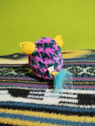 Adorable muñeco Furby con un diseño esponjoso y colores vibrantes. - Pelaje suave en tonos morado, azul y rosa. - Orejas grandes y expresivas. - Ojos y pico en color rosa.